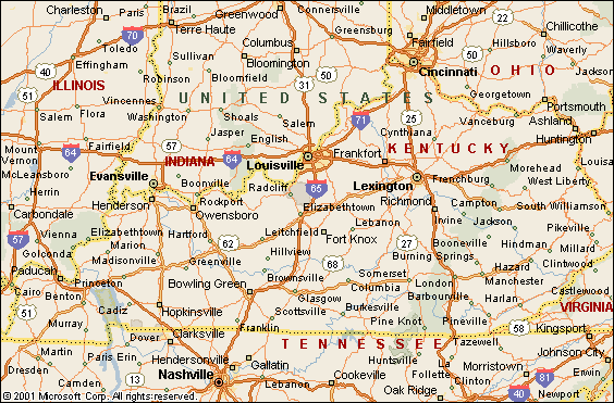 MapPoint map of the state of Kentucky Admission to Statehood: June 01, 1792