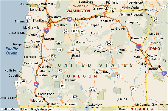 MapPoint map of the state of Oregon Admission to Statehood: February 14, 1859 - Valentine's Day!