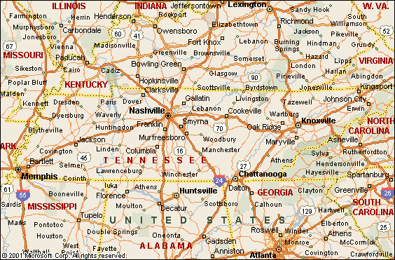 MapPoint map of the state of Tennessee Admission to Statehood: June 01, 1796