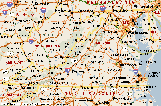 MapPoint map of the state of Virginia Admission to Statehood: June 25, 1788